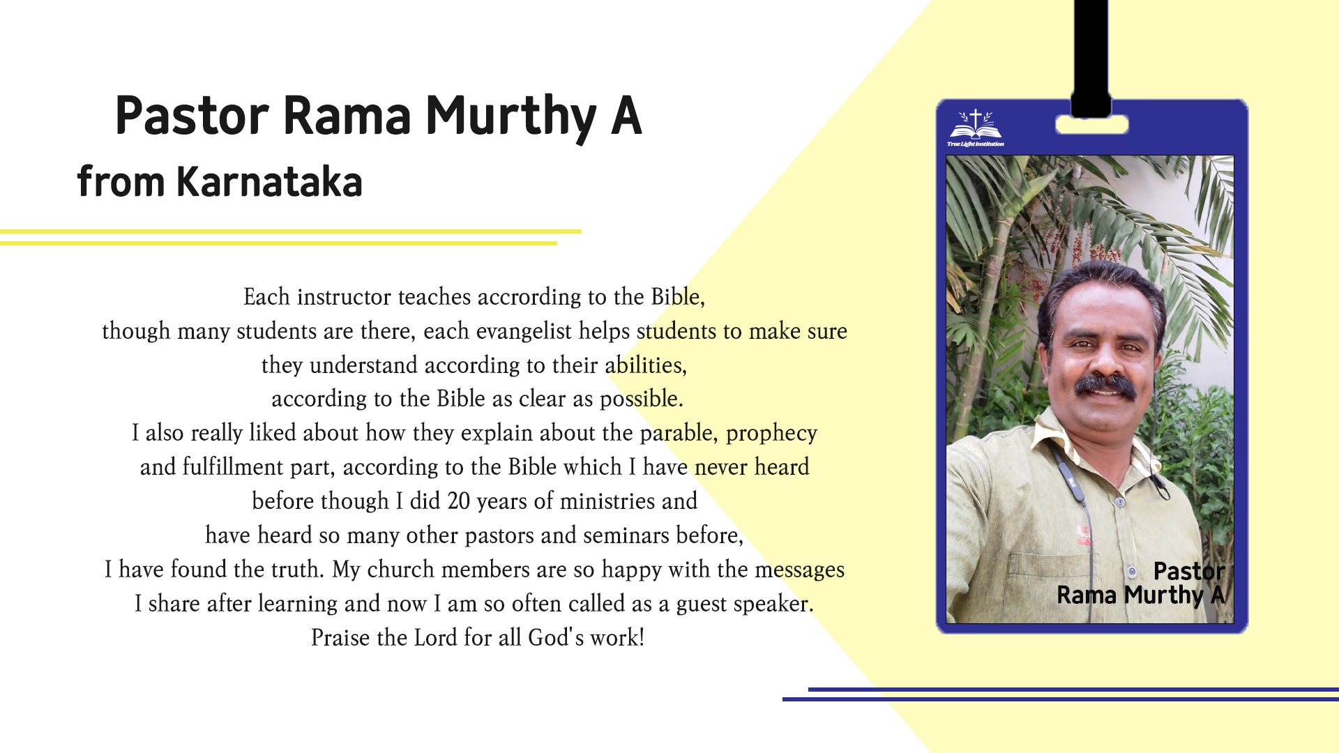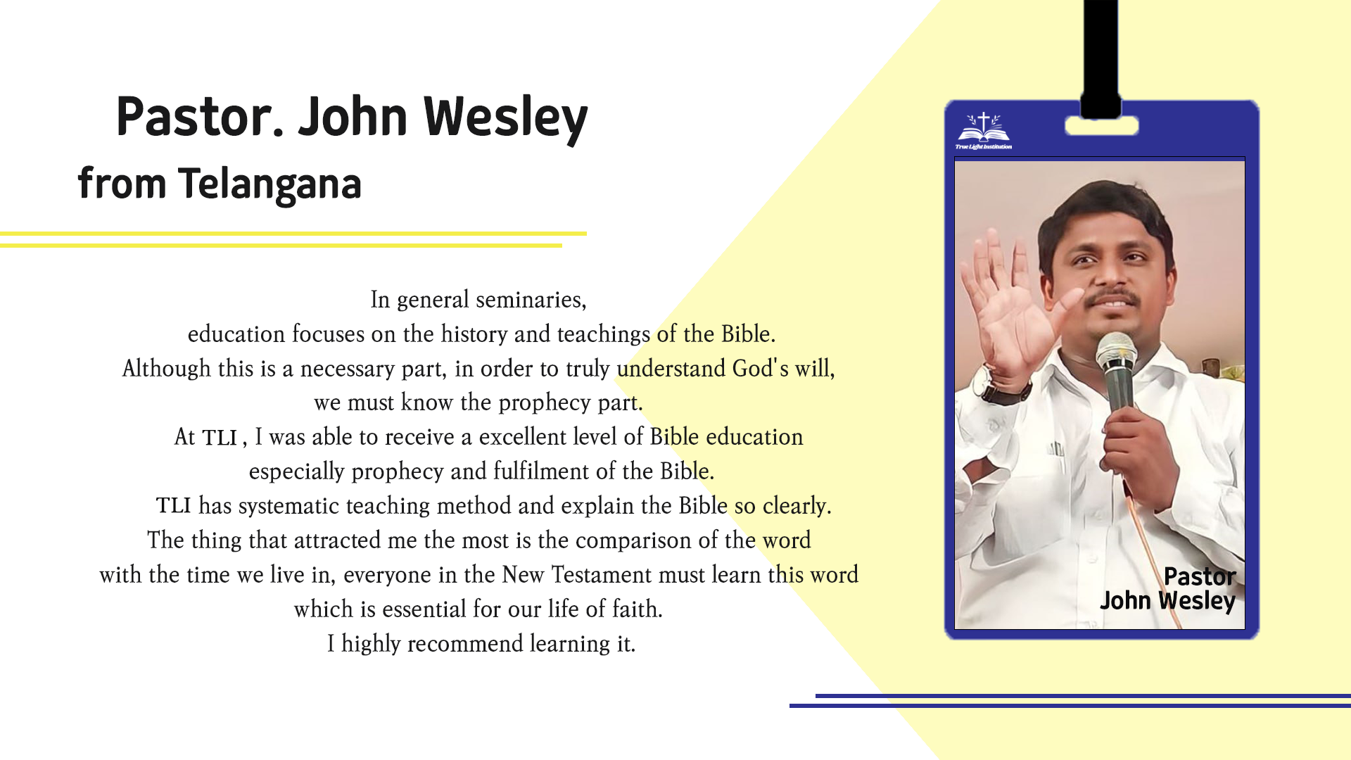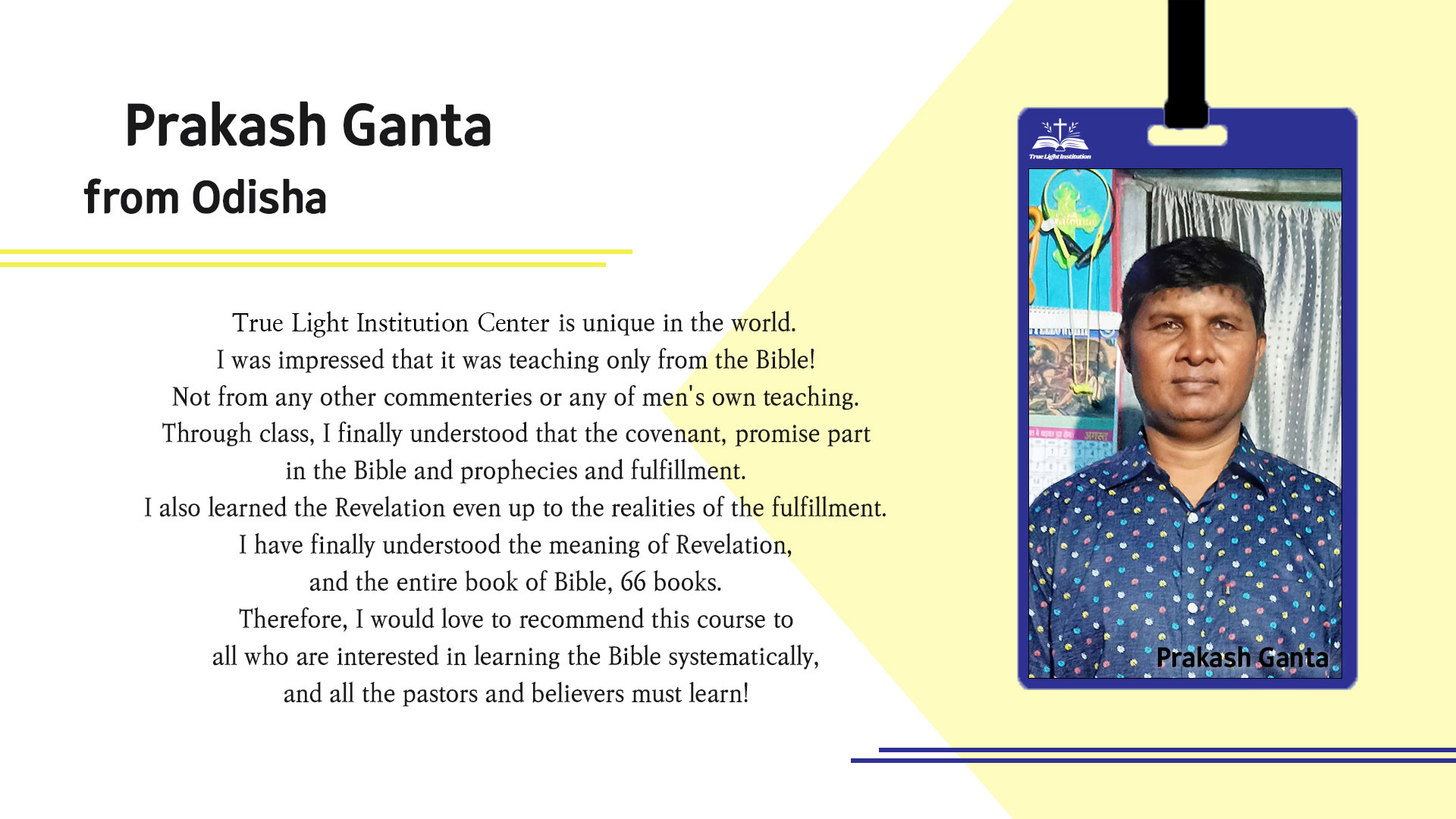 Read moreThe mission of True Light Institution is to help every believer examine one's faith within the context of the Bible and see oneself transform and recreate into God's image and likeness. In carrying out this mission, we bind ourselves with faith, hope, and love.
